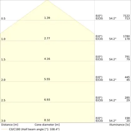 The Luminous Efficacy (lm/W) indicates how efficiently a light source uses energy. We divide the number of lumens by the wattage. The higher the number, the more efficient a product is in terms of energy consumption. LED lighting has a considerably higher lumen/Watt ratio than conventional lighting.