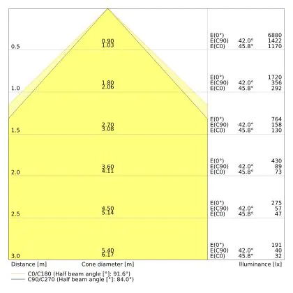 The number of lumens (lm) is the light output of a light source. The higher the number of lumens, the more light the light source emits. The wattage and the number of lumens are not connected to each other. An LED lamp with a low wattage can have a higher number of lumens than a conventional lamp with a high wattage.