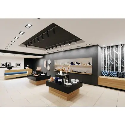 A fixture with a tiltable design makes it possible to direct the lighting specifically at an object or surface. This can play a particularly important role in shops (putting a new collection in the spotlight) or galleries (accentuating works of art). It can also influence the purchasing behaviour or interpretation of visitors.