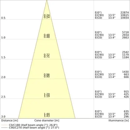 The colour code is a combination of colour rendering (CRI) and light colour (Kelvin). The first number indicates the colour rendering (1 = very poor colour rendering, 9 = maximum colour fastness). The second and third number contains the light colour. Example: the colour code 830 consists of good colour rendering (8) and warm white light (3000K). |