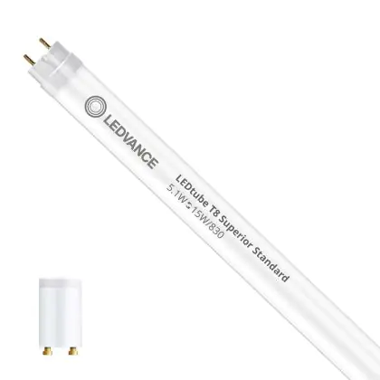 Ledvance LED Tube T8 Superior (EM/Mains) Standard Output 5.1W 810lm - 830 Warm White | 44cm - Replaces 15W