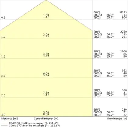 The colour code is a combination of colour rendering (CRI) and light colour (Kelvin). The first number indicates the colour rendering (1 = very poor colour rendering, 9 = maximum colour fastness). The second and third number contains the light colour. Example: the colour code 830 consists of good colour rendering (8) and warm white light (3000K). |