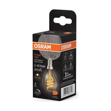 Osram Vintage 1906 LED Classic Slim E14 Pear Filament Clear 4.6W 470lm - 927 Extra Warm White | Best Colour Rendering - Dimmable - Replaces 40W