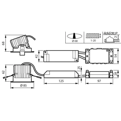 Cut out (mm) | 68 |