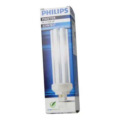 With a colour temperature of 2700K, Philips PL-T TOP 42W 827 4P will provide a warm white light. Philips PL-T TOP 42W 827 4P are very energy efficient: their energy label is classified A. Philips PL-T TOP 42W 827 4P lamps also have a very long lifespan, 13000 hours on average!